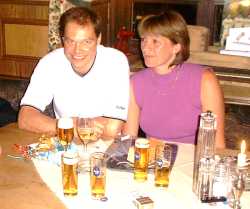 Chris Tozer's birthday party at Ännchen's Pub 04.10.01 Our dear old friend Chris Tozer from Norwich, portrait on the left with his wife Karen, celebrated his 39th birthday in Oberpleis. Since 1994, Chris is a regular guest and reinforcement for our 1st Team. Bachelor then, he is now married and the father of two sons, Benjamin (6) and Oliver (5). schmetter-ball.de looks forward to welcoming Chris and Karen again next year. | ||||||||||||||||||||||||||||||||||||||||||||||||||||||||||||||||||||