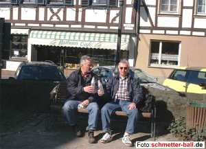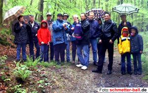 Singing in the Rain Schlendertag 2002 09.05.02 Getreu der Devise: "Bei schönem Wetter kann jeder wandern" machten sich insgesamt 18 Teilnehmer bei nicht ganz optimaler Witterung trotzdem auf die Socken. Nette Mitmenschen brachten die Wanderer zum Startpunkt nach Kalenborn. Durch den Basaltsteinbruch "Mehrberg" gelangten die scheinbar wasserdichten Schlenderer auf den Weg bergab bis ins romantische Kasbach-Tal. Dort folgten sie dem Bachlauf, immer auf der Hut, sich auf rutschigem Geläuf nicht auf die Nase zu legen. Nach exakt 90 Minuten war die erste Zwischenstation, eine ortsansässige Brauerei, erreicht, wo man sich mit Essen und allerlei Getränken stärkte. Während des 75-minütigen Aufenthalts ging der noch nicht weiter störende Nieselregen in ein heftiges Plästern über. Kurzerhand wurde die Bergetappe über die Erpeler Ley aus dem Programm genommen. Der Marsch führte nun auf dem kürzeren Weg am Rhein entlang nach Erpel, die Kinder, die mit ihren Gesängen gute Laune verbreiteten, immer mittendrin. Ehe die Gruppe vom Erpeler Bahnhof aus mit Bahn und Bus zurück nach Oberpleis aufbrach, hatte sie in der ersten Pizzeria am Platze noch schnell sämtliche Lambrusco-Vorräte vernichtet. Fazit: Die widrigen Umstände taten der guten Laune keinen Abbruch, im Gegenteil. Während bei der Konkurrenzveranstaltung "Rhein in Flammen" nur 10% der sonst üblichen Besucher kamen, gab es für die Schlenderung keine einzige witterungsbedingte Absage! schmetter-ball.de bedankt sich bei Mike für das Ausarbeiten der Route. | |||||||||||||||||||||||||||||||||||||||||||||||||||||||||||||||||||||