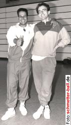 umsetzen. Wong Choong Hann und Lee Tsuen Seng brachten sie jeweils 1:0 und 2:1 in Führung, die von den indonesischen Doppeln wieder ausgeglichen wurde. Ausgerechnet Weltmeister Hendrawan, der sich nie mit dem 5x7-System anfreunden konnte (und es nun auch nicht mehr muss), war es vorbehalten, den entscheidenden Punkt für sein Land zu holen. Schon bei seiner unerwarteten Silbermedaille von Sydney und dem Weltmeistertitel 2001 in Sevilla, als ihn auch niemand auf der Rechnung hatte, zeigte er, dass man ihn niemals unterschätzen darf, wenn es um etwas Besonderes geht. Die favorisierten chinesischen Damen holten im Endspiel des Uber-Cups gegen Korea den Sieg (3:1), auch wenn im ersten Einzel Zhou Mi gegen Kim Kyeung Ran zunächst einmal verlor und auch die anderen Koreanerinnen sich erst nach harten Auseinandersetzungen geschlagen gaben. Als Bilanz der letzten Wochen kann man sagen, dass einzelne Siege gegen die Chinesinnen schon einmal möglich sind (Camilla in England, Ra/Lee in Japan), insgesamt spielen diese aber in einer eigenen Liga. Berichte und Bilder von Raphael Sachetat zu diesem großartigen Turnier, das von der deutschen Presse mal wieder völlig ignoriert wurde, finden Sie hier. Alles klar mit Linda 23.05.02 Mit dem Eintreffen der Spielberechtigung von Linda Walter, unserem Neuzugang für die 1. Mannschaft, ist der Vereinswechsel nun auch auf dem Papier perfekt. schmetter-ball.de freut sich auf ihren ersten Einsatz an der Seite von Anne-Katrin Seid. Staffeleinteilung veröffentlicht 23.05.02 Gute Nachricht für alle Neugierigen: Die Staffeleinteilung für die neue Saison 2002/2003 ist seit Anfang der Woche vorab auf der Seite des BLV NRW veröffentlicht. Die gedruckte Veröffentlichung erfolgt in der Juni-Ausgabe der Badminton-Rundschau. Historische Reaktion auf einen Aufruf von schmetter-ball.de 23.05.02 Verschreckte Passanten drehten sich am Wochenanfang auf Höhe der Mozartstraße 10 um, wo ekstatische Schreie aus der Kellerwohnung drangen. Es handelte sich dabei um den Jubel der Redaktion von schmetter-ball.de. Auf die Aktion Bitte sendet uns Bilder" war eine erste Reaktion aus der Leserschaft bei den verblüfften Redakteuren eingegangen. Martina Gust (Gusti") war es, die ein Bild aus ihrer Privatschatulle zur Veröffentlichung anbot. Zwar liegt dieses Bild vom Jubiläumsturnier 1994 der Redaktion ebenfalls vor, aber allein die Tatsache, dass sich jemand meldete, löste solche Begeisterung aus, dass Gusti zum Redaktions-Ehrenmitglied mit freiem Trinken bei allen Redaktionssitzungen bis an ihr Lebensende ernannt wurde. schmetter-ball.de nimmt die Einsendung zum Anlass, neben Gustis Bild auch mit weiteren Fotos an das Turnier von damals zu erinnern. | |||||||||||||||||||||||||||||||||||||||||||||||||||||||||||||||||||||