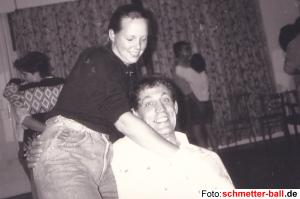 Gallone im Land 21.11.02 Dietmar 'Gallone' Falkus, unser Export nach Portugal, weilte zu einer Familienfeier in der Heimat und ließ es sich natürlich nicht nehmen, alte Bekannte in Pleis zu besuchen. Bei einer Feierstunde im großen Versammlungssaal des Herresbacher Bürgerzentrums wurden die dem Anlass angemessenen Zeremonien durchgeführt. Begleitet wurde Gallone von einem portugiesischen Geschäftsfreund und einer südländischen Schönheit, über deren Funktion und Herkunft schmetter-ball.de allerdings nicht aufgeklärt wurde. |