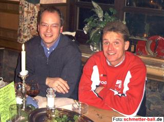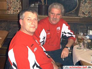 | Vereinschef Norbert Mahlberg (links) und Yogi Fischer sind zufrieden | Hallensprecher Kajo (rechts) zählte die Tore richtig, "Assi" Asbach schoss unser 3. Tor | ||||||||||||||||||||||||||||||||||||||||||||||||||||||||||||||||||||