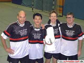| Organisator Seb (rechts) mit Stephan, Ang und Härris, den Fußballspielern der Badminton-Abteilung | |||||||||||||||||||||||||||||||||||||||||||||||||||||||||||||||||||||