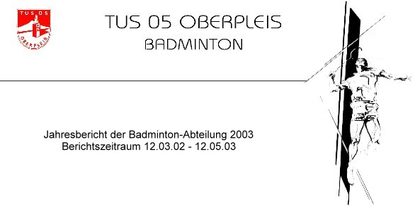 01. Mitgliederzahl Am 01.01.2003 hatte die Abteilung 184 Mitglieder, davon 60 Jugendliche. Der Zuwachs von 6 Mitgliedern gegenüber 2002 resultierte aus 21 Abmeldungen bei gleichzeitig 27 Neuanmeldungen. 02. Übungsleiter In der Saison 2002/2003 waren als Trainer bzw. Übungsleiter tätig: Li Ang - Senioren, U19 Richard Lemke -Jugend 1, U17 Harald Sobkowski - U19,U17 Björn Larsen - Jugend 2 Fabian Sobkowski - Schüler 1 Martin Lemke - Schüler 2 Vanessa Karper - Einsteiger Karin Stricker - Einsteiger Hans Keßler - Hobbygruppe 03. Verbandsmeisterschaften 11 Mannschaften des TuS 05 nahmen an den Verbandsmeisterschaftssspielen teil (7 Senioren-, 4 Juniorenmannschaften). In NRW gibt es aktuell 631 Badmintonvereine bzw. Vereine mit Badminton-Abteilungen. Davon meldeten 4 Vereine 12 Mannschaften für die Meisterschaftsspiele an. Bereits an 5. Stelle folgte der TuS 05 Oberpleis mit seinen 11 Mannschaften. Von der Mitgliederzahl her liegt der TuS 05 auf Platz 28 der NRW-Vereine. Während die meisten Seniorenmannschaften in der oberen Tabellenhälfte ins Ziel kamen, konnte die gerade erst aufgestiegene 2. Mannschaft leider die Klasse nicht halten. Nur erfreuliche Meldungen gab es im Jugendbereich. Die Jugend 1 in der Sonderklasse und die Schüler 1 errangen jeweils den Meistertitel in ihren Gruppen. Die Abschlusstabellen sind diesem Bericht als Anlage beigefügt. Für die kommende Saison wurden insgesamt 12 Mannschaften gemeldet, da 6 Jugendspieler zu den Senioren aufrücken. 04. 1. Mannschaft in der Oberliga Die 1. Mannschaft spielte im zweiten aufeinanderfolgenden Jahr in der Oberliga Süd. Trotz des Weggangs unserer besten Dame, Mirella Engelhardt (die nach Beuel abwanderte und dort in der 1. Bundesliga spielte), wurde der Klassenerhalt mit Platz 5 sicher geschafft. Ein besserer Platz wurde in der Rückrunde verspielt, weil zu oft wichtige Leistungsträger wegen Verletzungen fehlten. Herausragende Akteur der Mannschaft war wiederum der frühere chinesische Nationalspieler Li Ang (Spielertrainer). Die weiteren Stammspieler waren Anne-Katrin Seid, Linda Walter, Ramzi Abdul Rahim, Stefan Mandrella, Stephan Krämer und Dirk Engelmann. Darüber hinaus wurden eingesetzt: Karin Stricker und Astrid Steinbach. 05. Li Ang Der Vertrag mit Spielertrainer Li Ang konnte Ende Februar 03 bis einschließlich April 2004 verlängert werden. 06. Turniererfolge Mitglieder der Abteilung besuchten über 25 Turniere, dabei lag das Hauptaugenmerk auf den Junioren, bei denen Jugendwart Richard Lemke mit seinen Schützlingen 21 Turniere besuchte. Turniersieger und -siegerinnen wurden: Franziska Schröder (Mädchen U15 Weilerswist 2002) Hannah Pohl (Mädchen U9 Lohmar) Kristin Schönherr (Mädchen U11 Lohmar) Kristin Schönherr (Mädchen U11 Beuel) Lisa Kaminski/Alina Pohl (Mädchendoppel U13 Brauweiler) Martin Lemke/Benjamin Bachmann (Jungendoppel U17 Leverkusen) Kristin Schönherr (Mädchen U11 Refrath, Bezirksmeisterin) Martin Gerber (Jungen U11 Weilerswist 2003) Stefan Lemke (Jungen U15 Weilerswist 2003). An den Westdeutschen Meisterschaften U13 in Rheine nahmen Lisa Kaminski, Alina Pohl und Stefan Lemke teil (unter den jeweils 24 Jahrgangsbeste aus NRW). Weitere Turnierteilnahmen und Platzierungen sind dem Bericht als Anlage beigefügt. 07. Abteilungsvorstand Der Abteilungsvorstand setzt sich folgendermaßen zusammen: Abteilungsleiter Alfred Bellinghausen (zuletzt wiedergewählt am 25.03.03) Stellvertreterin Monika Pohl Stellvertreter und Finanzverwalter Harald Sobkowski Geschäftsführer HP Giesen Jugendwart Richard Lemke Manager 1. Mannschaft Stephan Krämer Beisitzer Jochen Quick Beisitzer Fabian Sobkowski. Der Abteilungsvorstand traf sich im Berichtszeitraum zu 7 Sitzungen. 08. Vorstandstour Die traditionelle Vorstandstour fand wieder am Karnevalsfreitag statt und führte, wie immer, nach Köln. 09. Sportler des Jahres Als 'Sportler des Jahres' der Abteilung wurde 2002 die 1. Senioren-Mannschaft, die sich so ausgezeichnet in der Oberliga behauptet, geehrt. 10. Markkleeberg Der befreundete Sportverein TSV 1886 Markkleeberg (bei Leipzig) besuchte uns vom 21. - 23. Juni 2002. Der nächste Besuch des TuS 05 Oberpleis in Markkleeberg wird vom 11. - 13. Juli 2003 stattfinden. Das ist dann bereits das 21. Treffen der beiden Vereine. 11. Englische Freunde Von unseren englischen Freunden kam Chris Tozer aus Norwich für ein Wochenende nach Oberpleis. 12. Hobbygruppe Wer Badminton hobbymäßig betreiben will, findet einen Platz in der Hobbygruppe unter der Leitung von Hans Keßler, die seit ihrer Neuformierung 1993 nun 10 Jahre besteht (montags 20:00 - 21:45 Uhr, Sporthalle 2 im Schulzentrum). 13. Internationaler Schiedsrichter Unser internationaler Schiedsrichter und Referee Werner Lammerich war neben seinen Einsätzen bei Bundesligaspielen als Schiedsrichter beim Länderspiel Deutschland-Dänemark, bei den German Open und bei internationalen Turnieren in Irland (Belfast) und Holland (Den Haag) im Einsatz. 14. Maifest Am 30.04.02 sowie am 30.04.03 fanden das 15. und 16. Maifest der Abteilung jeweils in Boseroth am Lützbach statt. Die Teilnehmerzahlen bewegten sich in der Region von 50 Personen. 15. Wanderungen Abteilungs-Wanderungen ('Schlendertage') fanden am 04. Mai 2002 zur Erpeler Ley und am 10. Mai 2003 zur Wahnbachtalsperre statt. 16. Herbstfest 147 Besucher kamen zum 18. Herbstfest der Abteilung am 26.10.02 im Sägewerk (Tischlerei Pohl). 17. Weihnachtsfeier Die 22. Weihnachtsfeier der Abteilung wurde am 21.12.02 von 120 Personen im Kakao-Palast besucht. Als Hl. Mann fungierte Kajo Miebach, der von Marie Bellinghausen unterstützt wurde. 18. Karneval Eine große Gruppe aus der Abteilung beteiligte sich traditionell beim Karneval des TuS 05 Oberpleis. Beim Preismaskenball konnte mit dem Kostüm 'Autoscooter' bereits zum vierten Mal in Folge der 1. Preis in der Kategorie 'Gruppen' gewonnen werden. 19. Pressearbeit HP Giesen war weiterhin verantwortlich für die Berichterstattung in der Lokalpresse und im General-