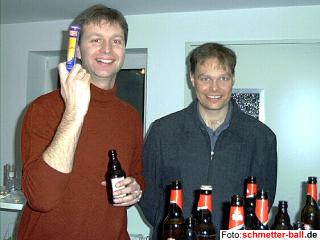 | Seit 1975 rennt er dem gefiederten Ball hinterher, unser Knacker (Nußmann, Nußknacker, Nutman, Nutty), und hat einige Höhen und Tiefen in unserem Sport mitgemacht. Mit einer zünftigen Party feierte er nun das Ende der Jugendzeit. Seine (unvergessene) größte sportliche Tat gelang ihm im Herbst 1983, als er in einer 3-Satz-Schlacht den Beueler Bundesligaspieler Rainer Wodey bezwingen konnte (siehe dazu den Originalbericht von 1983). Eine Prise Extra-Engagement für die Abteilung bewies Knacker durch langjährige Funktionärstätigkeit als Mannschaftsführer und als Mitglied des Abteilungsvorstandes (1991-95, 1998-2001, davon 6 Jahre stellvertretender Abteilungsleiter). schmetter-ball.de gratuliert und wünscht alles Gute. | |||||||||||||||||||||||||||||||||||||||||||||||||||||||||||||||||||||