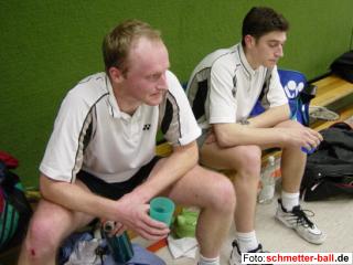 TSV Markkleeberg 1 steigt auf 26.02.03 In der Sachsenklasse West holte die 1. Mannschaft unseres befreundeten Vereines TSV 1886 Markkleeberg den Meistertitel und steigt damit in die Sachsenliga (klassengleich mit NRW-Oberliga) auf. Abteilungsleiter Jürgen 'Kerni' Kern, der seinen Stammplatz mittlerweile im 2. Team gefunden hat, ließ es sich nicht nehmen, am letzten Spieltag zusammen mit Moni Mischke das Mixed (siegreich) zu übernehmen. Ansonsten wurde der Erfolg weitgehend von einer jungen Truppe erzielt, die noch nicht einmal schmetter-ball.de komplett bekannt ist. Unsere herzlichen Glückwünsche gehen an Kerni und die übrigen Markkleeberger. Besuch in Markkleeberg im Juli 26.02.03 Zum vorigen Bericht passt die folgende Meldung: Unser anstehender Markkleeberg-Besuch konnte von den Verhandlungsführern Härris und Kerni nun endgültig terminiert werden. Wir werden vom 11. - 13. Juli nach Sachsen reisen. Wer sich den 8 bereits feststehenden Mitfahrern anschließen möchte, sollte sich bei Härris oder Chief melden. Ergebnisse der Swiss Open in Basel 26.02.03 Lee Hyun Il hieß der koreanische Sieger im Herreneinzel bei den Swiss Open, der damit in den Favoritenkreis für die WM aufrückte. Erstaunlich auch die Leistung seines Endspielgegners Boesen, der mehrere Top-Asiaten knackte. In Abwesenheit von Mi Zhou und Gong Ruina holte Zhang Ning den Titel im Dameneinzel gegen ihre jetzt für Hongkong antretende ehemalige Mannschaftskameradin Wang. Die Sieger im Herrendoppel, Limpele/Hian, werden wir bei der WM leider nicht sehen. Für ihre neue Heimat England sind sie international noch nicht spielberechtigt und der indonesische Verband, bei Abwanderung von Spitzenspielern ins Ausland als humorlos bekannt, wird sie nicht nominieren. Den einzigen europäischen Sieg erzielte die dänische Kombination Jens Eriksen/Mette Schjoldager im Mixed, die auch mehrere asiatische Paarungen besiegten. Obwohl sie die Weltrangliste anführen, ist das ansonsten eher selten der Fall Finalergebnisse Herreneinzel 1. Lee Hyun Il (Korea) 2. Anders Boesen (Dänemark) Dameneinzel 1. Zhang Ning (China) 2. Wang Chen (Hongkong) Herrendoppel 1. Limpele/Hian (England) 2. Cheng/Chen (China) Damendoppel 1. Yang/Zhang (China) 2. Wie/Zhao (China) Mixed 1. Eriksen/Schjoldager (Dänemark) 2. Kim/Lee (Korea) Marc Zwiebler gewinnt Herreneinzel bei den French Open 26.02.03 Das war zweifellos die eigentliche Sensation des vergangenen Wochenendes. Der 18-jährige Nachwuchsstar aus Beuel, Sohn unseres ehemaligen Trainers Karl-Heinz Zwiebler, gelangte mit drei Siegen in der Qualifikation zunächst bis ins Hauptfeld, wo er sich Runde um Runde durchkämpfen konnte und im Finale dem bekannten Dänen Joachim Fischer Nielsen das Nachsehen gab. Respekt! | |||||||||||||||||||||||||||||||||||||||||||||||||||||||||||||||||||||