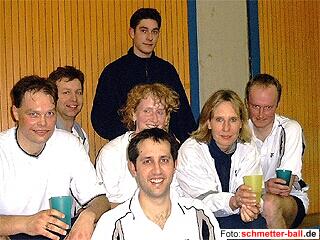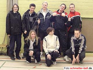 Jugend holt mit Doppelschlag die Meisterschaft in der Sondergruppe 26.02.03 Bilder von unserem Mitarbeiter Roman Krawielicki Zwei Siege mussten her, um den knappen Vorsprung in der Tabelle vor dem punktgleichen Verfolger Burscheid zu halten. Unsere 1. Jugend behauptete sich souverän in dieser stressigen Situation. Einem 8:0 in Wipperfürth, bei dem Stefan Lemke aus der Schülermannschaft erfolgreich mitwirkte, folgte im alles entscheidenden Spiel in Wahn ein 6:2-Sieg, der den Meistertitel in der Sondergruppe bedeutete. Nach der durchwachsenen Hinrunde mit einer Niederlage gleich im ersten Spiel hatte man diesen Erfolg beinahe schon abgeschrieben. Eine makellose, verlustpunktfreie Rückrunde brachte dann aber die Wende. Coach Lemmy Lemke hatte das Team gegen Wahn umgekrempelt und reiste mit 8 Akteuren an. Die Rechnung ging auf, die Joker stachen, und als die aus der 2. Jugend ausgeliehenen Shootingstars de la Chevallerie/Krawielicki aufliefen, stand der Sieg bereits fest (was die beiden nicht daran hinderte, noch ein Pünktchen draufzupacken). Folgendes Personal holte den Titel nach Oberpleis: Vanessa Karper. Anne Weyler und Heike Schröder bei den Mädchen sowie die Jungen Martin Lemke, Ben Bachmann, Niklas Hoffmann, Philipp Jäger, Stefan Lemke, Philipp de la Chevallerie und Roman Krawielicki. schmetter-ball.de gratuliert dem Team und seinem Coach. | |||||||||||||||||||||||||||||||||||||||||||||||||||||||||||||||||||||