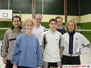 ![]() | Mit einem 5:3 gegen DJK Leverkusen, dem ersten Sieg in der Saison, konnte die 2. Mannschaft zwar den Abstieg nicht mehr verhindern, sie bestätigte aber den positiven Eindruck aus den letzten Begegnungen. Den Grundstein legten die Herrendoppel Gußmann/Hugenberg und Mehren/Placke, die relativ sicher gewannen. Jeweils in 3 Sätzen setzten sich Michael Hugenberg und Martin Mehren in ihren Einzeln durch, den 5. Punkt steuerte schließlich Moni Pohl im Dameneinzel bei. Nach dem Abstieg 2001 und dem Wiederaufstieg 2002 rutscht die Mannschaft also erneut hinunter in die Bezirksliga. Damit die Lücke zum 1. Team nicht unüberbrückbar groß wird, gibt schmetter-ball.de schon einmal das Saisonziel für 2004 bekannt: AUFSTIEG! | ||||||||||||||||||||||||||||||||||||||||||||||||||||||||||||||||||||
