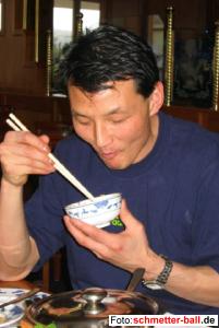Saison 2003/2004 endet mit durchwachsenen Ergebnissen Nur die Oberliga-Mannschaft überzeugt 5. Team endgültig im Keller 13.03.04 TuS Oberpleis 1 - Heiligenhaus 6:2 Unser Korrespondent HP Giesen war noch zu müde, um einen Bericht zu schreiben Mit einer guten Leistung beendete die 1. Mannschaft die Oberligasaison. Zwar gingen zum Auftakt beide Herrendoppel verloren, wobei Ramzi Abdul Rahim und Frank Heuwing seltsam drucklos spielten und Stephan Krämer im 2. Doppel total verwachst hatte, aber durch ein leicht gewonnenes Damendoppel von Anne-Katrin Seid und Mirella Engelhardt und (nach kleineren Anlaufschwierigkeiten) ein überzeugendes Einzel von Mirella schafften die Oberpleiser doch einen 2:2-Zwischenstand. Leid tun konnte einem Li Angs Einzelgegner, der sich abstrampelte, aber trotzdem meistens nicht wusste, wo der Ball war. 3:2, aber noch keineswegs gewonnen, denn nun folgte das 3. Herreneinzel, normalerweise die Achillesferse unseres Teams. Aber Dirk Engelmann spielte gegen den U15-Verbandstrainer Tobias Grosse konzentriert und angriffslustig wie selten und schaffte im letzten Saisonspiel den viel umjubelten 1. Sieg. 4:2. Ramzi fand gegen den zwar technisch sehr guten, aber etwas tapsigen Holger Hasse das richtige Rezept, schickte ihn in alle Ecken uns setzte sich klar durch. 5:2. danach bekamen es Anne und Frank im Mixed mit dem ehemaligen Bundesligaspieler Markus Türnich zu tun, der aber gegen das schnelle Spiel unserer Paarung nicht viel mehr auf die Reihe bekam als seine ohnehin schwächere Partnerin. Endstand 6:2. Den guten Ausgang einer erfolgreichen Saison feierte anschließend das komplette Team zusammen mit dem Abteilungsvorstand bei einem von Ang für alle ausgesuchten Essen im Mings Garden'. | |||||||||||||||||||||||||||||||||||||||||||||||||||||||||||||||||||||