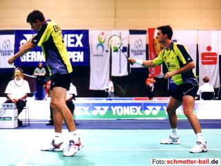 letzten 8, "unsere" Chinesin Xu Huaiwen ist kurz vor den wichtigsten Turnieren des Jahres leider komplett außer Form geraten und scheiterte bereits zum zweitenmal hintereinander in der 1. Runde. Grether/Schenk waren im Damendoppel nicht am Start. Auch in dieser Disziplin und im Mixed zeigten die beteiligten chinesischen Jugendweltmeister, was sie draufhaben. Die Ergebnisse: Herreneinzel: 1. CHEN Jin (China) 2. Björn JOPPIEN (Deutschland) 15:9, 15:5 Dameneinzel: 1. PI Hongyan (Frankreich) 2. CHEN Lanting (China) 11:5, 11:8 Herrendoppel: 1. GAN Taik Cha/KOO Kien Keat (Malaysia) 2. Jesper LARSEN/Joachim FISCHER-NIELSEN (Dänemark) 15:6, 17:15 Damendoppel: 1. DU Jing/ YU Yang (China) 2. FENG Chen/PAN Pan (China) 5:15, 15:4, 15:6 Mixed: 1. XIE Zhongbo/YU Yang (China) 2. Nikolaj ZUEV/Marina Yakushenko (Russland) 17:16, 15:9 | |||||||||||||||||||||||||||||||||||||||||||||||||||||||||||||||||||||