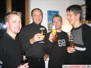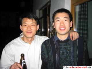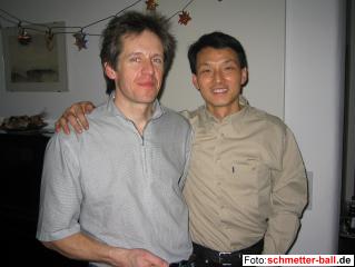 Li Ang wurde 40 18.03.04 Ins Haus des Doppelpartners Stephan Krämer hatte Li Ang die Gästeschar, die sich aus Freunden aus Düsseldorf, Beuel, Friesdorf und Oberpleis zusammensetzte, anlässlich seines 40. Geburtstages eingeladen. Neben den vom Jubilar persönlich gebrutzelten chinesischen Spezialitäten stand Angs Karaoke-Anlage mit 20 000 einprogrammierten Titeln im Mittelpunkt des Abends. Dass Ang ein begeisterter Karaokesänger ist, war bekannt, dass er ein durchaus talentierter und leidenschaftlicher Sänger von chinesischen Liebesliedern ist, erfuhr schmetter-ball.de an Ort und Stelle. Von den Oberpleisern trauten sich nur die Bühnenerfahrenen (Chief, Härris, Marie) ans Mikrofon. Unermüdlich demgegenüber die fast komplett anwesenden Herren des 1. Teams aus Beuel, die aber, wenn sie so Badminton spielen wie sie singen, keine Chance haben werden, in den Endspielen gegen Langenfeld die Deutsche Meisterschaft zu holen. Der Chief, der bisher HP für den unmelodischsten Sänger auf unserem Planeten gehalten hatte, musste seine Meinung angesichts der Gesänge der Beueler revidieren und überlegt zur Zeit, ob der Geschäftsführer nicht sogar ein Kandidat für die Regensburger Domspatzen sein könnte. | |||||||||||||||||||||||||||||||||||||||||||||||||||||||||||||||||||||