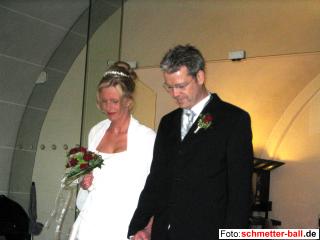 Vorstandsmitglied in den vorzeitigen Ehestand verabschiedet 24.06.04 Jetzt wird es langsam kritisch für heiratswütige Damen, denn mit Joe Quick wurde einer der letzten Junggesellen der Abteilung (abgesehen von unseren U15ern) Opfer eines weiblichen Wesens. Wie bei Hochzeiten von Abteilungsmitgliedern seit fast 30 Jahren üblich, stellten Abteilungsmitglieder vor der Kirche ein Schlägerspalier auf, bei dessen Durchgang das Brautpaar und die Hochzeitsgäste einen Obolus in den Hut von Hannah und Eva werfen mussten. Auf diese Weise gelang es, ein paar Dukaten für die Jugendkasse zu ergattern. Kurz nach den ausgiebigen Feierlichkeiten bis zum nächsten Morgen (mit musikalischen Beiträgen von unseren Freunden Achim und Don Ribell sowie der Dieter-Quick-Band) brachen Joe und seine Sandra zur 3-wöchigen Hochzeitsreise nach Mexiko auf. schmetter-ball.de wünscht den beiden einen guten Start ins gemeinsame Leben und dass die dem Hörensagen nach in Mexiko weit verbreitete und unvermeidliche Rache eines gewissen Montezuma gnädig mit ihnen umgeht. | |||||||||||||||||||||||||||||||||||||||||||||||||||||||||||||||||||||