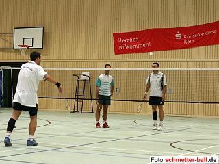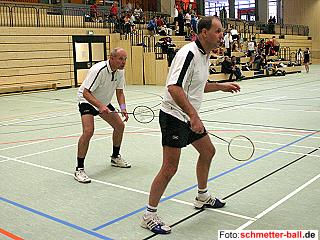 Die ebenfalls ausgeschriebene A-Klasse für Regionalliga- und Oberligaspieler konnte nicht ausgetragen werden, da das Meldeergebnis zu gering war bzw. einige Gemeldete kurzfristig abgesagt hatten. Erfreulicherweise waren die Herren unserer 1. Mannschaft (Stephan Krämer, Li Ang, Ramzi Abdul Rahim, Ridzwan Abdul Rahim) trotzdem in der Halle und trugen ein Demonstrationsdoppel aus, das von Li/Krämer sicher gewonnen wurde . Der Abteilungsleiter freute sich, Toni Krämer aus Siegburg als ältesten Turnierteilnehmer begrüßen zu können. Der 72-jährige Badmintonveteran war bereits 1954 beim Gründungsspiel der Abteilung in Siegburg auf Seiten des Gegners dabei und ist heute immer noch rüstig und als Mannschaftsspieler aktiv. | ||||||||||||||||||||||||||||||||||||||||||||||||||||||||||||||||||||
