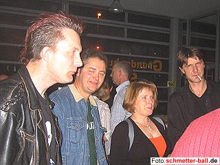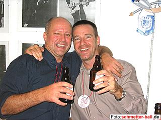 Jubiläumsfeierlichkeiten zum 50-jährigen Bestehen der Abteilung 21.10.04 Über mangelnden Besuch bei der Jubiläumsfete im Forum der Grundschule Ameisenhügel am 16. Oktober brauchten sich die Verantwortlichen wirklich nicht zu beklagen, eine genau Teilnehmerzahl lässt sich allerdings nicht einwandfrei feststellen. Klar ist, dass es, dem Anlass angemessen, die bisher größte Feier der Abteilungsgeschichte war und dass die von der Stadt als Limit für diese Austragungsstätte festgelegte Teilnehmerzahl nur unwesentlich unterschritten wurde. Tony aus Los Angeles, Phil aus Grimsby, die Markkleeberger sowie Andi aus Potsdam und Tina aus Berlin hatten die weitesten Anreisen auf sich genommen. Der Abteilungsleiter konnte auch Bürgermeister Peter Wirtz unter den Gästen begrüßen, der zusammen mit Turnierdirektor HP Giesen die Siegerehrung des Jubiläumsturniers durchführte. Kajo Miebach als Vertreter der Fußballabteilung sprach den Federballern ebenso seine Glückwünsche aus wie Hans Hartmann aus Friesdorf und Jürgen Kern aus Markkleeberg, der mit seiner Truppe auch eine Geburtstagstorte überreichte. Nach dem Essen, das Vereinswirt Dietmar 'Bongo' Blumenthal für die Gäste gekocht hatte und das von Monivize und ihren Helferinnen um ein Käsebüfett bereichert worden war, gaben unsere Freunde von 'Raubwal' ein über zweistündiges Konzert, welches von allen Freunden der Rockmusik bejubelt wurde. Selbst die Mitglieder der Band widersprachen nach dem Konzert niemandem, der diesen Auftritt als den besten in ihrer noch verhältnismäßig jungen Bandgeschichte bezeichnete. Danach ging es für die meisten Gäste aber noch etliche Stunden weiter, es wurde geklönt und zu Disco-Klängen getanzt, bis der Hausherr, der sich zwischendurch ein Schläfchen genehmigt hatte, um halb fünf die letzten Nachtschwärmer herauswarf. Es war nicht überraschend, dass einige immer noch nicht die Nase voll hatten und nach kurzem Fußweg im Keller des Chiefs einfielen, wo es bis nach halb sieben weiterging. Schon bevor sich abzeichnete, dass die Veranstaltung auch finanziell im grünen Bereich abgewickelt werden konnte, wurde der Abteilungsleiter am Festtag mit ungewöhnlich zufriedener Mine sogar auf der Tanzfläche gesichtet. Dieser dankt hiermit allen Helfern, allen voran seiner Stellvertreterin Monivize, die mit ihrem Einsatz dafür gesorgt haben, dass ein schönes Jubiläumsfest gefeiert werden konnte. Bei nächster Gelegenheit werden die Helfer zu einem 'Helferfest' eingeladen werden. | |||||||||||||||||||||||||||||||||||||||||||||||||||||||||||||||||||||