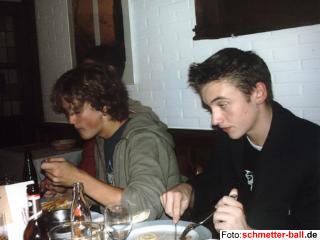 Ansonsten verlief die Kegelpartie in geselliger Atmosphäre ohne weitere Vorkommnisse. Gewinnen konnte fast jeder einmal, da wir alle Spiele, die der Kegelfamilie Kaminski bekannt, sind einmal spielten. Nach diversen Partien und eine Kegelbahn später fand man sich dann in der benachbarten Jugendstilkneipe zum internationalen Essen ein, bei dem Schnitzelgerichte aus aller Welt verzehrt wurden. Die Stimmung kam zu ihrem Höhepunkt, nachdem die ersten Weizenbiere, bzw. Fanta-Limonaden verkonsumieret worden waren. Inmitten einer lokaltypisch angemessenen Gesellschaft gelang es uns beim Essen, den Altersdurchschnitt der Gäste auf knapp über 70 zu senken. Zu unseren traditionellen Jugendstatistiken: Federballer des Jahres wird bei uns wie gewohnt derjenige, der die Statistik selber anfertigt. In diesem Jahr war es erstmals Stefan Lemke, der sowohl die Gesamtstatistik, als auch die Trainingsbeteiligungsliste für sich entscheiden konnte. Aber wer war nun eigentlich am Erfolg dieses überdurchschnittlich begabten Teams beteiligt? Es waren: Der Leitwolf unter den Spielern, der begnadete Trickser, genannt Die Katze" Martin Chang" Lemke; sein jüngerer Familiengenosse Stefan, der nervenstarke Witzekenner und Cross-Drop-König aus allen Lebenslagen, Lemke; der altinternationale Starspieler vergangener Tage Martin Dahm, besser bekannt als D"; ein Pils(z)sucher mit Gewe(ä)hr, Philipp Jägermeister und die Hoffmann-Brothers, wobei der ältere Nik" mit Übertraining erst zur Halbsaison aus Chile anreiste, und der jüngere, Hannes Hannah" Hoffmann von betagteren Herren auf dem Herren-WC als Frau identifiziert wurde. Bei den Damen waren dies zum einen die Kegelgöttin und Einzelbezwingerin ihrer Mutter, Alina Pohl, zum anderen die morgenmuntere und stets ausgeschlafene Filigrantechnikerin Lisa Einarmiger Bandit" Kaminski. Für die Leistungsstärke dieses Teams sorgten der ins Altersbild der Gaststätte passende Anhänger des 1. BC Oberpleis, Jugendwart Richard Lemmy" Lemke, und der lizenzierte Reisebus Fabian Chester" Sobkowski, zugleich Teil des legendären und berühmt berüchtigten Doppels Lemkowski. Die nächste Feier müsste eigentlich schon am Montag, den 25.10.04 stattfinden, da die Protagonisten Chester und Chang, nebst Traditionscoach Lemmy Lemke, der die kurze Hose | ||||||||||||||||||||||||||||||||||||||||||||||||||||||||||||||||||||