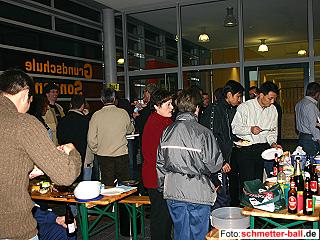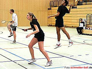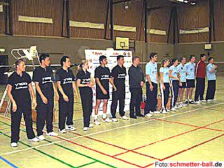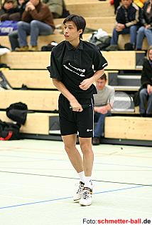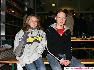 Philipp Jäger/Niklas Hoffmann und Daniela Huber/Franziska Schröder in eine Führung umgewandelt. In der Folge gestaltete sich die Partie ausgeglichener als erwartet. Zwar gewann Franziska ihr Einzel gewohnt souverän, die Herren des BC Witterschlick schienen sich mit Blick auf die Tabelle aber mehr vorgenommen zu haben. Nicht nur zur Überraschung der Zuschauer erkämpfte sich unsere 2. Jugend dennoch drei Punkte aus den Herreneinzeln. Hervorzuheben ist die Leistung von Andreas Trumpler, der, nur durch den Ausfall von Martin Faßbender in das ungeliebte 3. Einzel gerutscht, drei begeisternde Sätze zeigte. Leider musste er seiner kraftraubenden Spielweise im folgenden Mixed Tribut zollen. An der Seite von Daniela lag er in Führung, als ihn Anfang des zweiten Satzes Muskelkrämpfe zur Aufgabe zwangen. Die Stimmung konnte durch diesen Gegenpunkt nicht mehr getrübt werden. Die Meisterschaft lag in greifbarer Nähe und ist durch die jüngsten Punktverluste der Konkurrenz nun auch am letzten Spieltag nicht mehr angreifbar. Soweit die Worte des Hl. Björn. Die Mannschaft rundete am letzten Spieltag die Saison ab mit einem Kantersieg gegen SV 04 Siegburg, den Tabellenletzten. Obwohl alle Mann an Bord waren, gab man zusätzlich Vincent Jäger die Chance auf einen Einsatz im Team. Nach dem erfreulichen Gewinn des Meistertitels wird die Mannschaft aber nun auseinanderfallen. Nik Hoffmann und Martin Faßbender wechseln altersbedingt ins Lager der Senioren. Falls, wie es nach Lage der Dinge momentan aussieht, 2005/2006 nur eine Jugendmannschaft ins Rennen geht, könnten auch Franziska Schröder und Daniela Huber im nächsten Jahr als Frühseniorinnen eingesetzt werden. Mitgliederversammlung 2005 04.03.05 Die diesjährige Mitgliederversammlung der Badminton-Abteilung findet am Donnerstag, 24. März 2005 um 19.30 Uhr statt. Bitte vormerken. Der Tagungsort und weitere Einzelheiten werden demnächst bekannt gegeben. German Open 2005 04.03.05 schmetter-ball.de besuchte die German Open bereits am Tag der Achtelfinale, einfach um mehr Spiele sehen zu können (56 waren es an diesem Mittwoch) und noch einige der Weltklassespieler und -spielerinnen zu beobachten, die später im Viertelfinale schon nicht mehr dabei waren, dessen ungeachtet aber Badminton vom Feinsten anzubieten haben (Boonsak Ponsana, Ronald Susilo, Roslin Hashim, Chen Jin!). Webmaster Tom Birkhäuser war für schmetter-ball.de erneut offiziell als Innenraumfotograf akkreditiert, als einer von insgesamt 4, und schoss insgesamt mehr als 900 Bilder, die im Laufe der nächsten 20 Jahre alle auf schmetter-ball.de erscheinen werden. Einen abschließenden Bericht wird es demnächst geben. Aktuelle Informationen und Ergebnisse finden Sie hier. | |||||||||||||||||||||||||||||||||||||||||||||||||||||||||||||||||||||