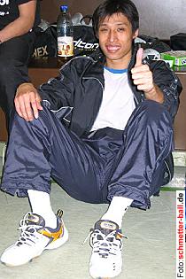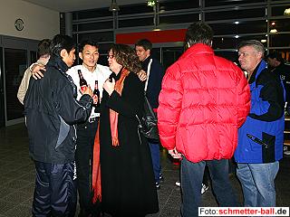 ![]() | Mittlerweile ist er längst wieder in seiner Heimat angekommen, der chinesische Nationalspieler Wu Yunyong, der am vergangenen Wochenende bei uns zu Besuch war. Wir lernten einen bescheidenen, unkomplizierten und freundlichen jungen Mann kennen, der gegen Ende seines Aufenthaltes äußerte, dass er gerne noch einmal wiederkommen würde. Wenn das so einfach wäre! (Was könnte man schon dagegen haben?) Auch im 4. Versuch, seinen Einsatz in unserer 1. Mannschaft zu realisieren, gab es wieder turmhohe bürokratische Hürden zu überwinden, die Li Ang in zahlreichen Telefonaten nach China ausräumen musste. Trotzdem hing der Besuch auch dieses Mal am seidenen Faden, denn das erforderliche Visum traf erst einen Tag vor der Abreise ein. Zudem bewegen sich die Kosten für eine solche Aktion in einem Bereich, in dem wir als kleiner Verein sie uns trotz aller Sponsoren nicht mal eben so leisten können, von Peking nach Düsseldorf fliegt man nicht mit Ryanair und der chinesische Verband achtet darauf, dass ein Spieler, den man für Einsätze im Ausland freigegeben hat, auch entsprechend etwas dafür bekommt. Aber die Gelegenheit war dank der Kontakte von Li Ang da und wir haben sie genutzt auch in dem Wissen, dass sie vielleicht niemals wiederkehren wird. So steht der Besuch von Wu nun für alle Zeit als ein herausragendes Ereignis in unserer Abteilungsgeschichte. Wir erfuhren auch, warum Wu in der letzten Zeit nicht häufiger auf internationalem Parkett auftauchte: Er war von seinem Verband | ||||||||||||||||||||||||||||||||||||||||||||||||||||||||||||||||||||