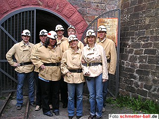 Staffeleinteilung für die Saison 2006/2007 ist veröffentlicht 25.05.06 5 Senioren- und 5 Juniorenteams werden 2006/2007 für den TuS 05 Oberpleis auf Punktejagd gehen. Das ist eine Mannschaft weniger als im Vorjahr. Wegen der Rücktritte einiger altgedienter Spieler und dem anhaltenden Damenmangel wurde die Senioren-Bezirksklassenmannschaft nicht mehr ins Rennen geschickt. Im Einzelnen werden im Herbst die Felder bevölkern: SENIOREN TuS 05 Oberpleis 1 in der Verbandsliga Süd II TuS 05 Oberpleis 2 in der Bezirksliga Süd IIb Staffel 1 TuS 05 Oberpleis 3 in der Kreisliga Süd IIb Staffel 1 TuS 05 Oberpleis 4 in der Kreisliga Süd IIb Staffel 2 TuS 05 Oberpleis 5 in der Kreisklasse Süd IIb Staffel 3 JUNIOREN TuS 05 Oberpleis Jugend 1 in der Sonderklasse Süd II Rhein-Berg TuS 05 Oberpleis Jugend 2 in der Normalklasse Süd II Bonn TuS 05 Oberpleis Schüler 1 in der Normalklasse Süd II Bonn TuS 05 Oberpleis Mini 1 in der Klasse U13 Mini Süd II Bonn TuS 05 Oberpleis Mini 2 in der Klasse U11 Mini Süd II Erft BLV-Verbandstag verabschiedet einige Satzungsänderungen 25.05.06 Beim Verbandstag des Landesverbandes NRW (bei dem übrigens unser Mitglied Werner Lammerich wieder zum Kassenprüfer gewählt wurde) lagen einige Anträge auf Satzungsänderungen vor, die auch weitgehend angenommen wurden. Den Spielbetrieb direkt betrifft die Aufhebung der Maximalzahl von eingesetzten Spielerinnen und Spieler pro Meisterschaftsspiel (bisher 5 Herren, 3 Damen). Im Text in der Spielordnung heißt es nun 'beliebig viele Herren und Damen'. Das bedeutet in der Praxis, dass in einer Mannschaft bis zu 8 Herren und 4 Damen pro Spiel eingesetzt werden können. Weitere Änderungen betreffen die nun strenger gefasste Erteilung von Spielberechtigungen und auch das Ausfüllen der Spielberichte, bei denen das Eintragen der Vornamen nun zur Pflicht wird. Hierzu wird der Abteilungsvorstand rechtzeitig vor der Saison ein Merkblatt für alle Mannschaftsführer in Umlauf bringen. Mannschaftstour des 3. Teams nach Saarbrücken 25.05.06 Gleich mit 9 Personen, 3 Damen und 6 Herren, machte sich die 3. Mannschaft vom 5. - 7. Mai auf große Fahrt ins Saarland. Zu einem ungewöhnlichen Höhepunkt wurde dabei der Besuch eines Bergbau-Stollens, in den man zünftig gekleidet einfuhr. Von den weiteren Aktivitäten, vor allen Dingen nachts, drang nicht viel in die Öffentlichkeit und auch die von Monivize an die Redaktion gelieferten Bilder unterlagen einer strengen Zensur. | |||||||||||||||||||||||||||||||||||||||||||||||||||||||||||||||||||||