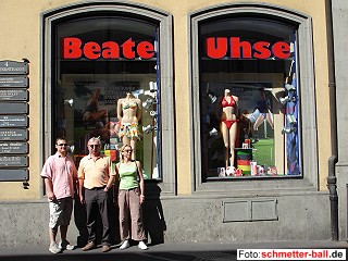 Kerni aus Markkleeberg wurde 50 15.09.06 Jürgen Kern, Abteilungsleiter unseres Partnervereins Markkleeberg und in seiner Heimatstadt bekannt wie ein bunter Hund, feierte seinen 50. Geburtstag am 8. Juli in der Möncherei und die Oberpleiser durften bei dieser Feier natürlich nicht fehlen. So reisten vom 7. - 9. Juli immerhin 7 Personen aus dem Siebengebirge in die südliche Leipziger Vorstadt und überraschten den Jubilar, der, wenn überhaupt, nur mit einer weit kleineren Delegation gerechnet hatte. Da das Wetter mitspielte verbrachten die Oberpleiser den Abend des Anreisetages in einem Biergarten nahe des Landgasthauses, das als Unterkunft diente. Samstags ging es einmal mehr nach Leipzig, das sich zurzeit schneller ändert, als man gucken kann. Das abendliche Fest in der Möncherei ließ keine Wünsche offen und man frischte auch die Bekanntschaft zu den weiteren Markleeberger Freunden auf. Es braucht sicherlich nicht erwähnt zu werden, dass die Oberpleiser als letzte den Veranstaltungsort verließen und Richtung Quartier stolperten. | |||||||||||||||||||||||||||||||||||||||||||||||||||||||||||||||||||||