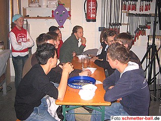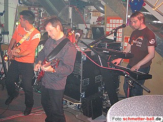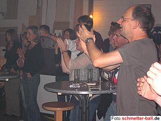 21. bis 22. Herbstfest am 14. Oktober 2006 08.11.06 Niemand hätte es der neuen Abteilungsleitung verübeln können, wenn sie, mit den ganzen erstmals zu bewältigenden Arbeiten am Hals, in diesem Jahr auf ein Herbstfest verzichtet hätte. Umso mehr darf man sich darüber freuen, dass Abteilungsleiter Chester Sobkowski und Monivize Moni Pohl nicht nur die Tradition am Leben erhielten, sondern auch die Verpflichtung einer Live-Band von den Vorgängern mit übernommen hatten (auch wenn es sich dabei um den größtmöglichen finanziellen Risikofaktor handelt). Um direkt ein Fazit für die schmetter-ball.de-Leser (die in der Mehrzahl eher nicht anwesend gewesen sein können, denn ansonsten wäre es im Sägewerk voller gewesen) zu ziehen: Es wurde ein schönes Fest. Dem Chronisten gelang es jedenfalls nicht, unter den 78 Anwesenden einen Unzufriedenen zu finden. Zur guten Stimmung leistete die erstmals im Sägewerk auftretende Band 'CoverRocks' einen großen Beitrag, die mit ihrem gemischten Programm aus alten und neueren Rockstücken kein Problem hatte, die Gäste zum Mitmachen und Mitsingen zu animieren. Dabei überspielte sie mühelos das Handicap, dass der etatmäßige Bassist der Band nicht mitwirken konnte und somit nicht alle Lieder aus dem Repertoire zur Aufführung gelangen konnten. Unbestrittener Star der Formation ist Leadsänger und Frontmann Lucas Oepen, der sich, seine Band und die Songs sehr professionell und sympathisch präsentierte. Der Mann an seiner Seite in der ersten Reihe, Gitarrist Wolfgang Schmitt, entpuppte sich derweil ebenfalls schnell als cooler Könner, die etwas im Hintergrund agierenden Mark Schmitz an den Tasten und Helmut Euskirchen an der Schießbude trugen ihren unverzichtbaren Teil zu Sound und Harmoniegesängen bei. Gut gefiel das abwechslungsreiche Repertoire der Band mit einigen selten gehörten Songs. Der Redakteur freute sich besonders über den umgetexteten James-Brown-Hit 'Ich föhl mich jot' und über die Eigenkomposition 'Wir müssen ins Bett', die, nicht wirklich überraschend, um kurz vor 12 als letzte Zugabe den Zuschauern unmissverständlich klar machte, dass der Auftritt nun vorbei sei. Nahtlos schloss Abteilungs-DJ Hannes mit Musik aus seinem legendären Koffer an und es wurde wieder einmal richtig spät, bis das Tor des Sägewerks für dieses Jahr verrammelt werden konnte. | |||||||||||||||||||||||||||||||||||||||||||||||||||||||||||||||||||||
