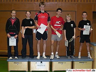Die kleinsten Teilnehmer der Oberpleiser Badmintonabteilung an der Meisterschaftsrunde haben es geschafft: Sie gewannen mit einem 5:1 am letzten Spieltag in Kreuzau die Meisterschaft der Einsteigerklasse U11. Den Grundstein für diesen Erfolg hatte das Team von Richard Lemke am vorletzten Spieltag mit einem 4:2-Erfolg gegen die bis dahin führende Mannschaft aus Brauweiler gelegt. Entscheidenden Anteil am Erfolg der U11er hatten die Spielerinnen Verena Lemke und Sarah Färber, die auch in kritischen Momenten Nervenstärke zeigten. Zum Team gehören ferner: Sebastian Flink, Niclas Neumann, Joshua Saal und Lars Bopper. | |||||||||||||||||||||||||||||||||||||||||||||||||||||||||||||||||||||