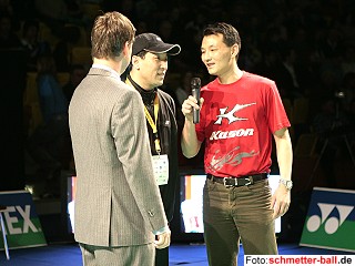 | Yong Dae Lee, die große koreanische Hoffnung (vorne) | Li Ang dolmetschte am Finaltag das Interview mit Chinas Headcoach Li Yong Bo | ||||||||||||||||||||||||||||||||||||||||||||||||||||||||||||||||||||
