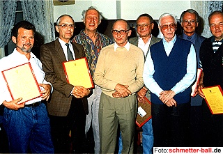 | Chief und Tünn beim Ehemaligentreffen 1994 | Teilnehmer des Gründungsspiels 1954: v.l.n.r. Josef Becker, Rudi Bellinghausen, Toni Krämer, Bernhard Gast, Helmut Bellinghausen, Franz Bellinghausen, Mättes Limbach, Karl Weber | ||||||||||||||||||||||||||||||||||||||||||||||||||||||||||||||||||||