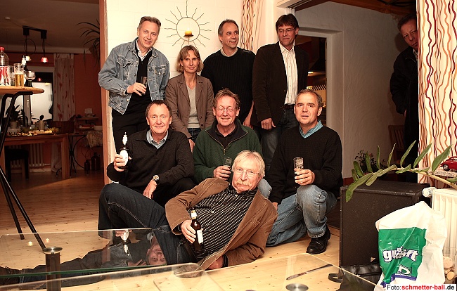 | Bei Anne Schiranskis 50. Geburtstagsfeier waren rein zufällig gleich sieben ehemalige Hl. Männer anwesend, die sich hier zusammen mit dem Chief für den Fotografen versammelt haben. Oben von links: Bernd Bussen (2001), Moni Pohl (2005, mit Heiligenschein), Eddy Felderhoff (1990), Norbert Zimmermann (1991), unten: Matthias Schönfelder (1997), Fränz Buhr (1998), Pedro Susbauer (1995). | |||||||||||||||||||||||||||||||||||||||||||||||||||||||||||||||||||||